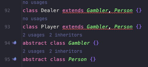 // GamblerPerson -> 단일 상속이기 때문에 새로운 추상 클래스를 만든다.