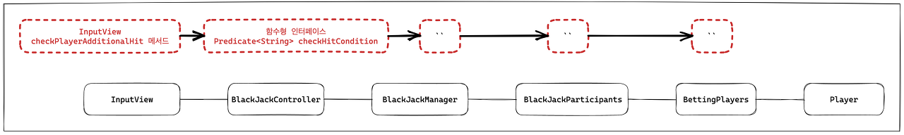 blackJackManager.hitByPlayer(InputView::checkPlayerAdditionalHit, ...);