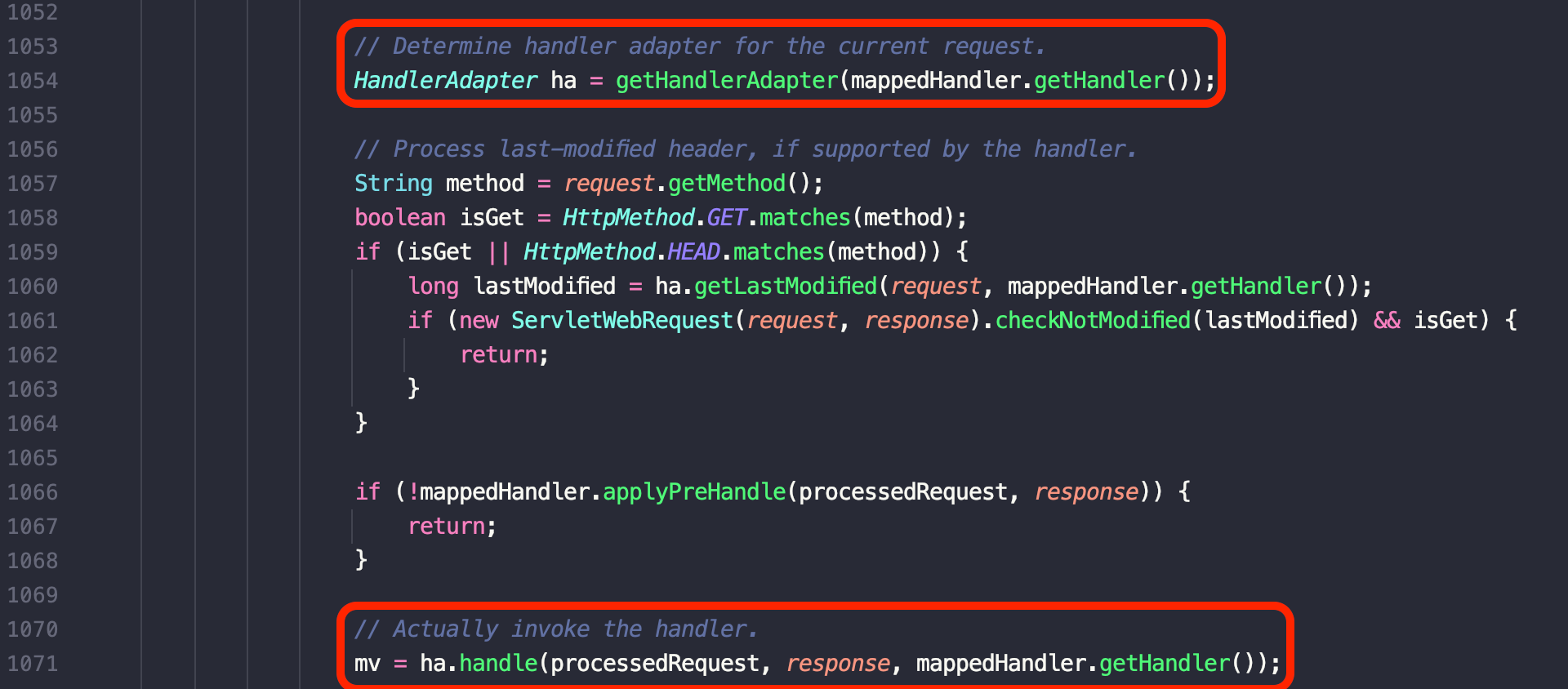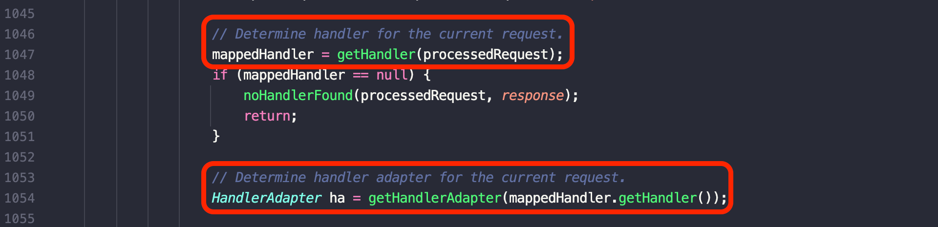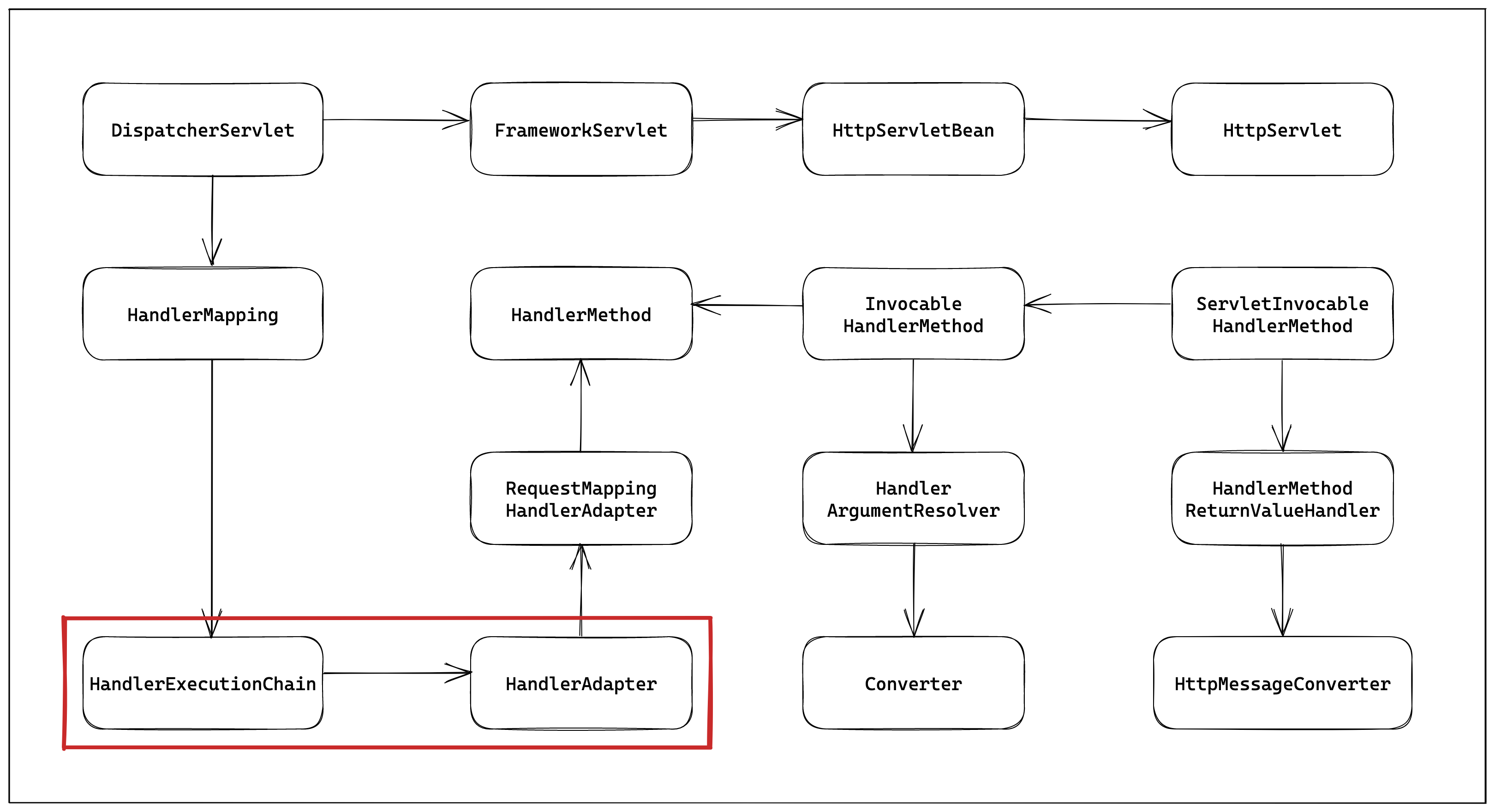 - getHandlerAdapter() : HandlerExecutionChain에 맞는 HandlerAdapter를 가져온다.