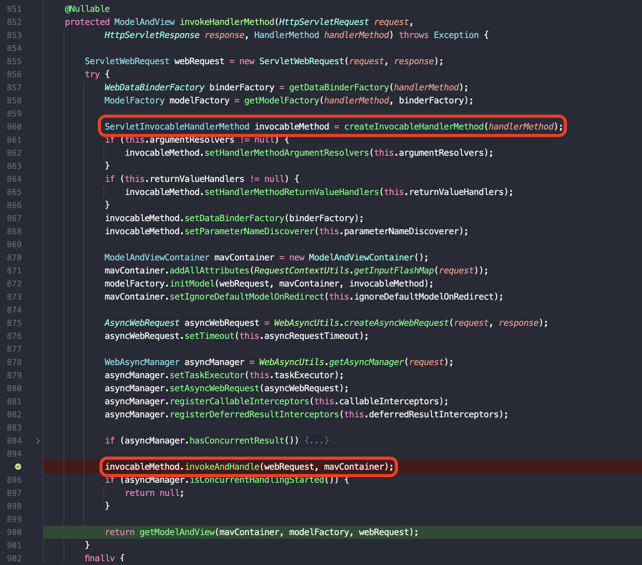 이 invokeHandlerMethod() 안에서 ArgumentResolver와 ReturnValueHandler의 동작을 볼 수 있다.
