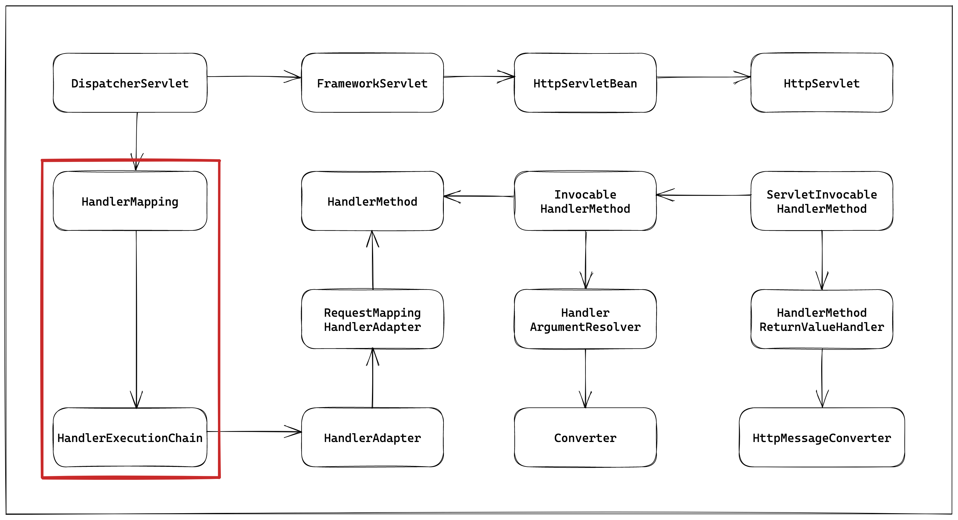 - HandlerMapping을 통해서 핸들러(컨트롤러)를 찾는다.