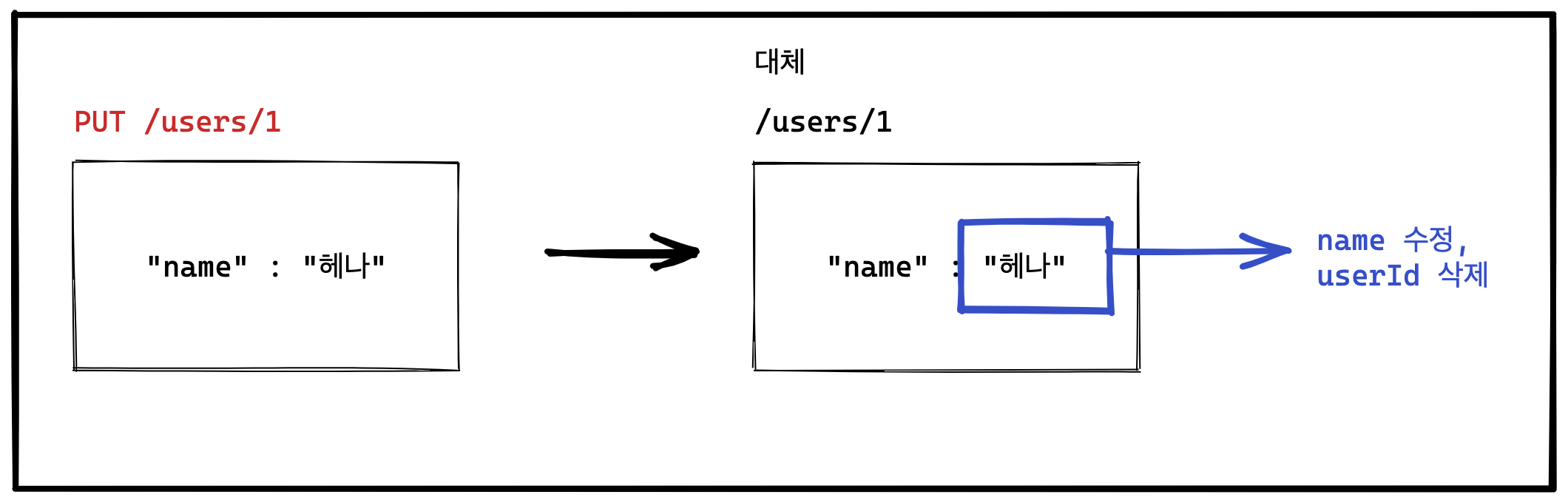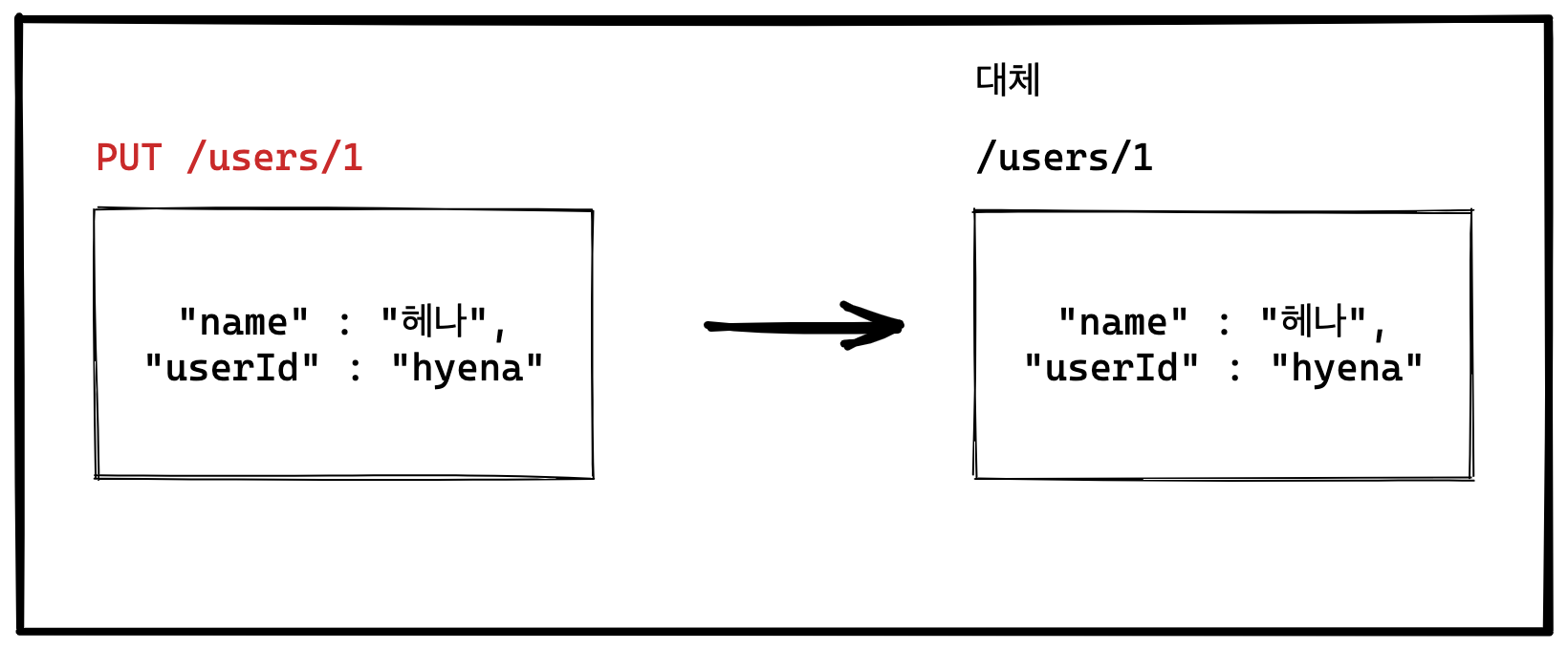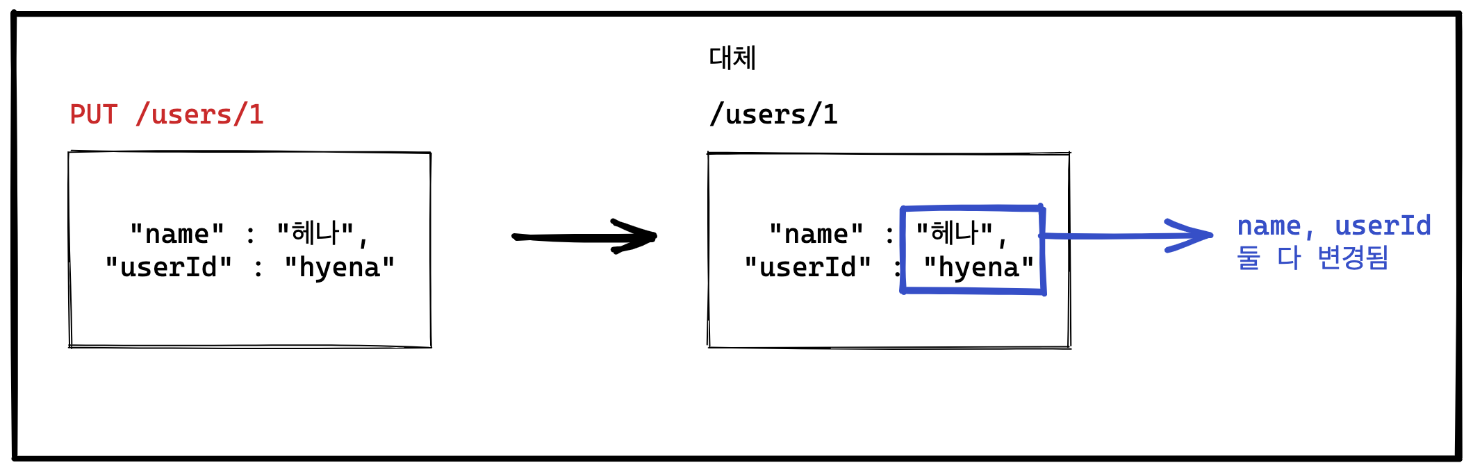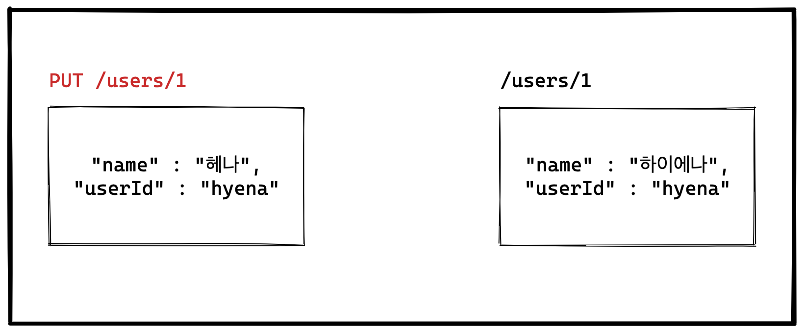 PUT 메서드는 덮어씌운다고 생각하면 이해하기 쉬울거다.