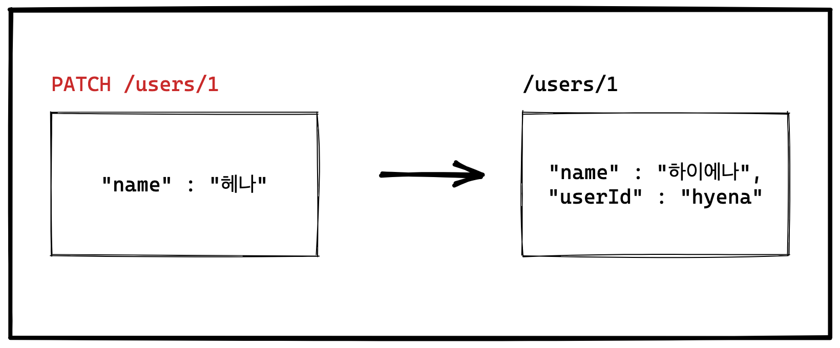 PATCH 메서드를 이용해서 자원의 부분 변경이 가능함을 그림으로 확인할 수 있다.