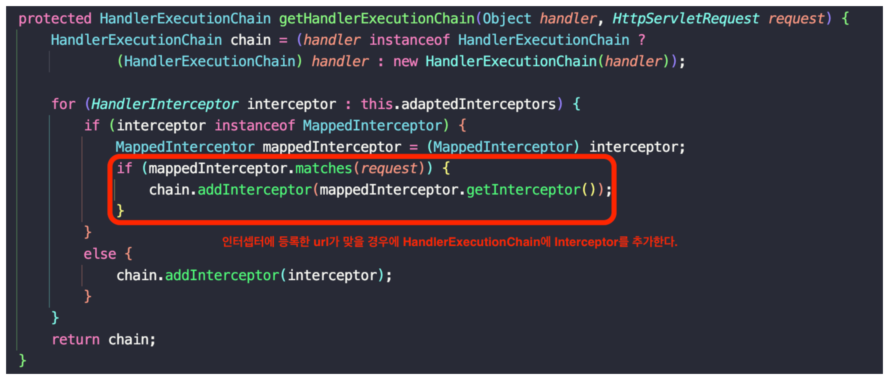 - mappedHandler 변수 타입 : HandlerExecutionChain