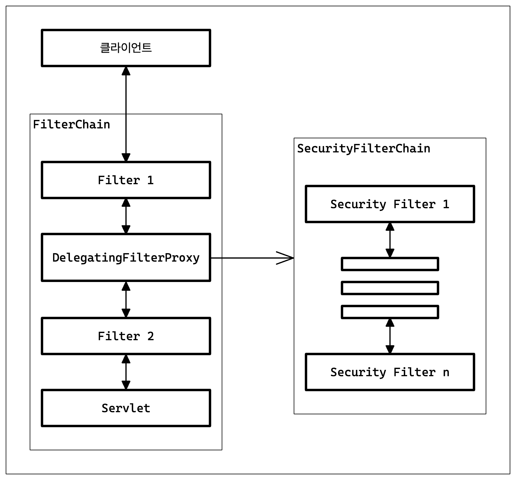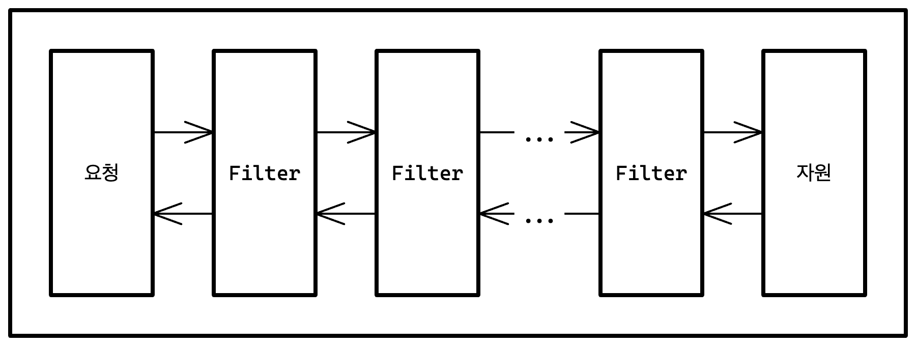 이 개념은 필터 체인(FilterChain)을 통해서 알 수 있고 간단하게 그림만 보고 넘어가자.