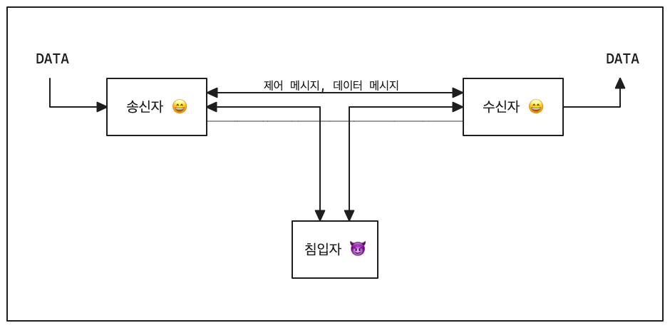 이러한 문제를 해결하기 위해서는 침입자가 메시지를 가로채도 해석하지 못하게 암호화하면 된다.