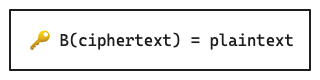 KEY_B🔑와 암호문(ciphertext)를 복호 알고리즘에 넣어 평문(plaintext)으로 만든다.