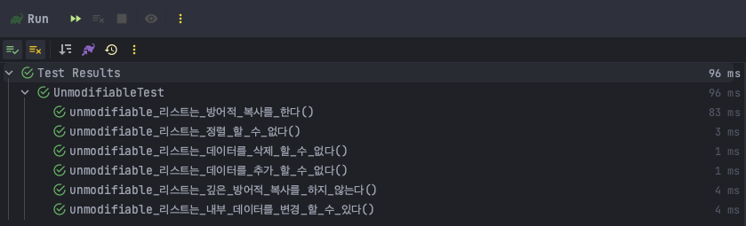 이러한 이유로 저는 외부에서 데이터 순서를 변경하지 못하게 UnmodifiableList를 사용했습니다.
