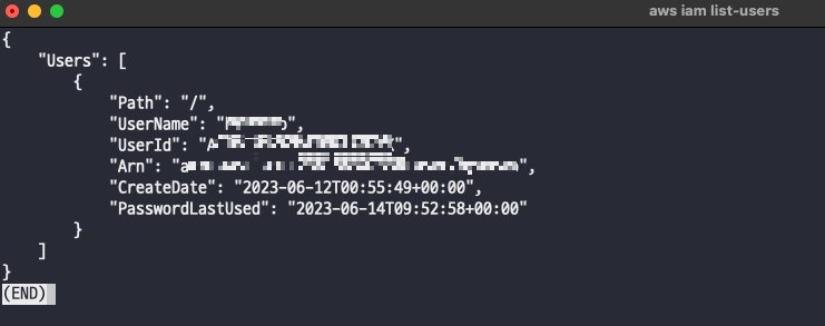 이제 다음과 같이 AWS CLI를 통해 명령어 수행이 잘 되었다는 것을 확인할 수 있다.