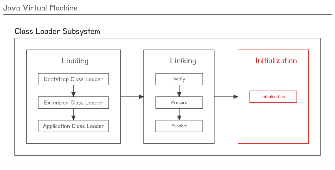 JVM은 다중 스레드로 동작하기에 적절하게 동기화하여 동시에 동일한 클래스 또는 인터페이스가 초기화하는 것을 방지합니다.