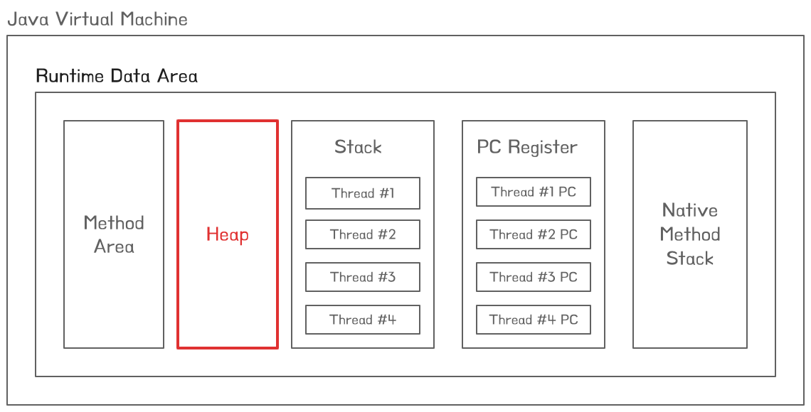 힙 영역도 JVM 당 하나만 할당되는 공유 리소스입니다.