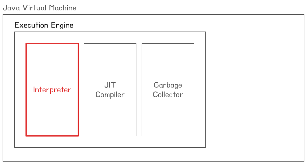 인터프리터는 바이트코드를 해석하고 명령을 한 줄씩 실행합니다.
